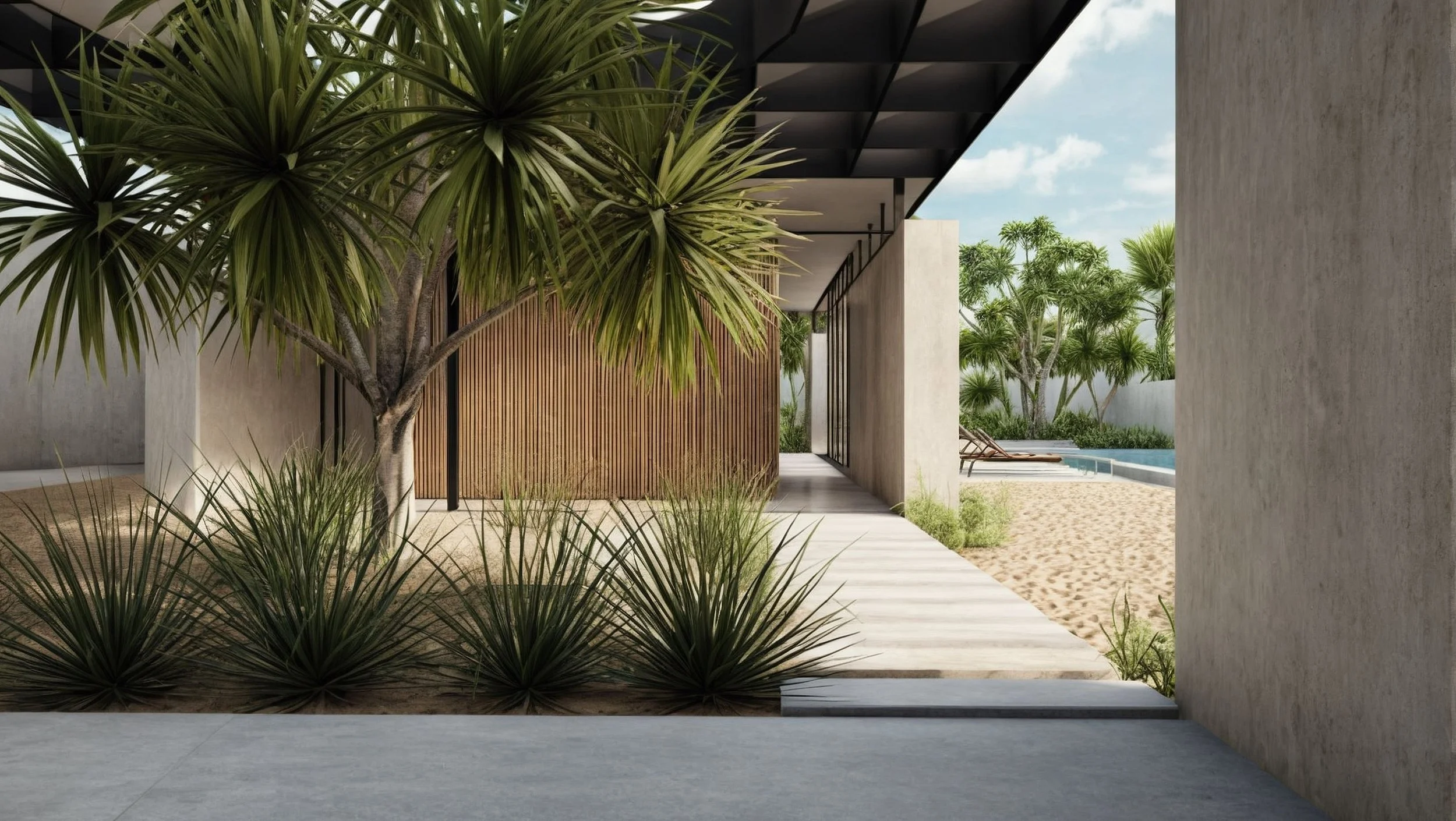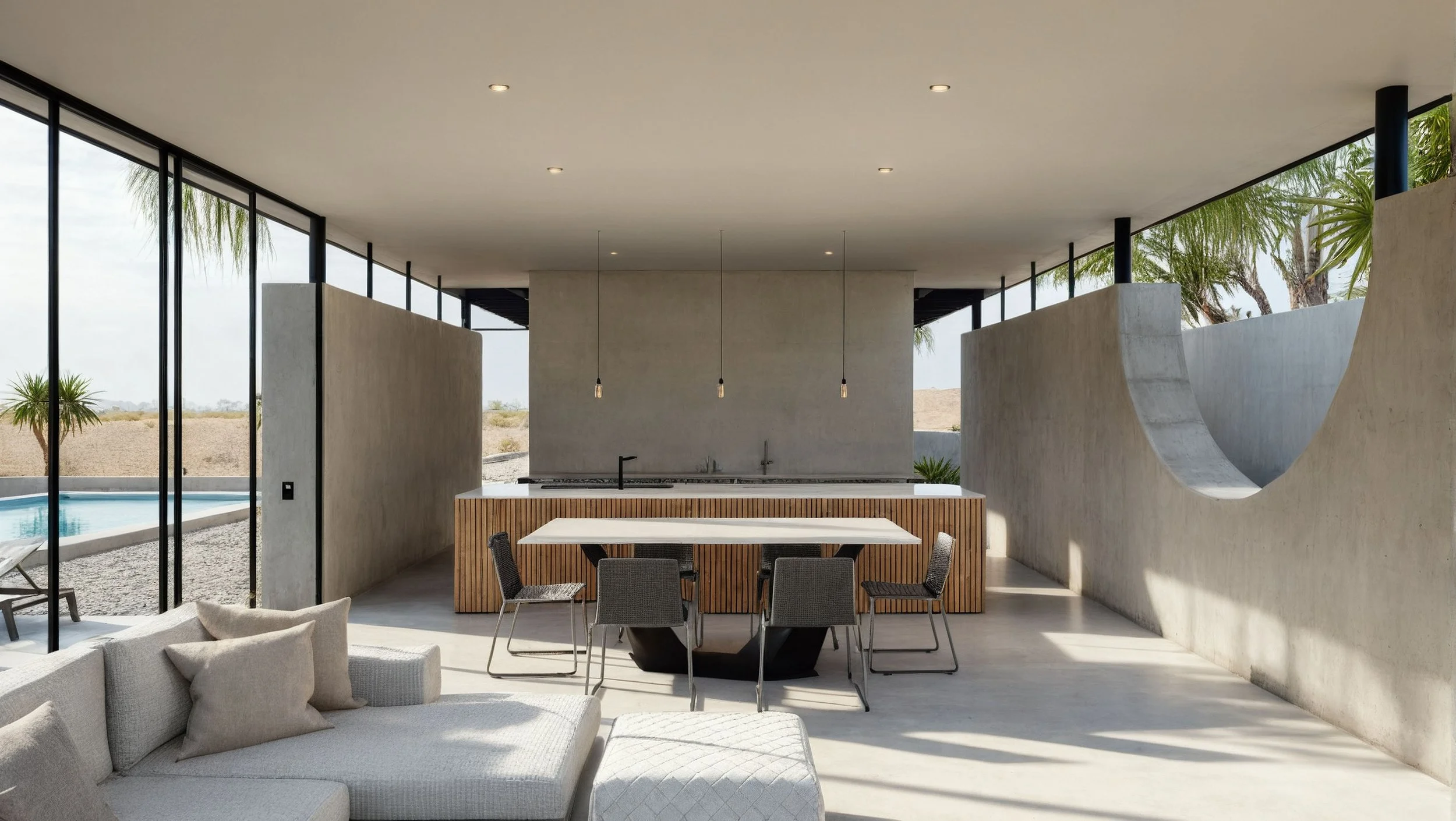 The Silvia is minimalist architecture combined with open-plan interior that blurs the boundaries between indoor comfort and breathtaking natural surroundings embracing elegance and tranquility. It celebrates the harmony of modern living with a beach rugged, timeless environment that boasts curated vegetation, sculpted concrete form and bold architectural design elements.